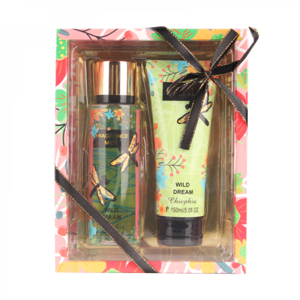 مجموعة وايلد دريمز من شيكفيا هي مجموعة تتألف من لوشن للجسم ومعطر للجسم، مصممة لتوفير تجربة فريدة ومنعشة للعناية بالبشرة وتعطير الجسم. إليك وصفًا لهذه المجموعة: